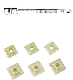 | SELF-ADHESIVE TIE MOUNTS Material: Usage: Application: Nylon66,94V-2,cerificated by UL,the back attached sponge glue imported. Peel the sponge glue and stick on the wall then, bundle the wire with cable ties. For bundling wires and other things save time and convenient, used for the wall which can,t be made a hole |