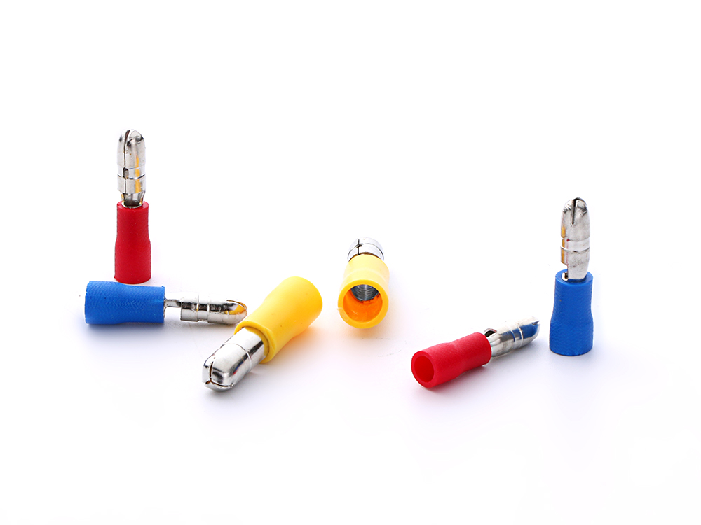 Brass connector, the insulator body shall be molded nylon, color coded to run.