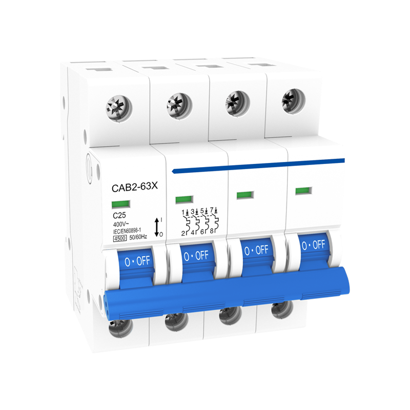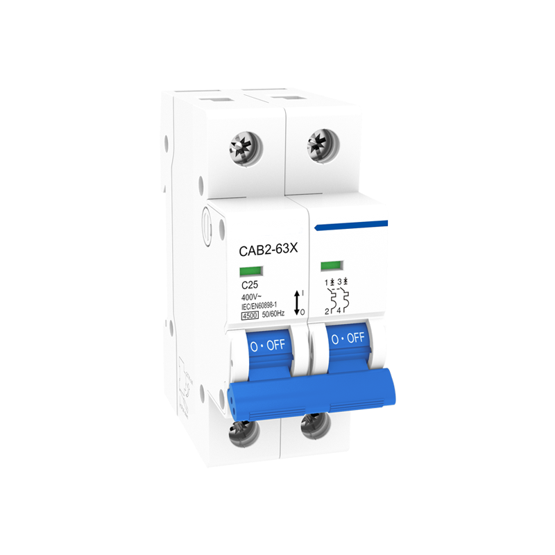 CAB2-63X Circuit Breaker (MCB)has the characteristics of advanced structure, reliable performance, high breaking capacity and beautiful appearance. It is mainly used for AC 50Hz or 60Hz, rated voltage 400V or below and rated working current 63A or below. It is used for overload and short-circuit protection of lighting, distribution lines, equipment in office buildings, residential buildings and etc. It can also be used for infrequent on-off operations and conversion of lines.
