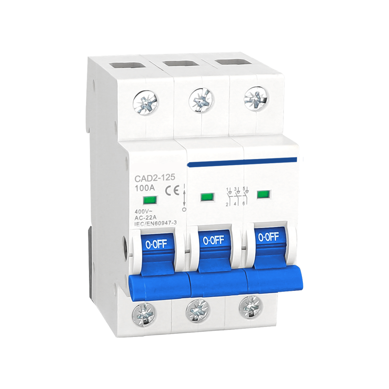 CAD2-125 Isolation Switch is suitable for AC 50Hz or 60Hz, rated current 125A, rated working voltage 230V and 400V or below in the power distribution; It is mainly used as the main switch of terminal electrical appliances and also control various types of electric motors, small power appliances and lighting places; Its mechanical life is 10,000 times, of which the electrical life is 4,000 times.