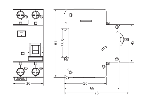 | No. of poles | 1P+N 2module, N line with disconnected |