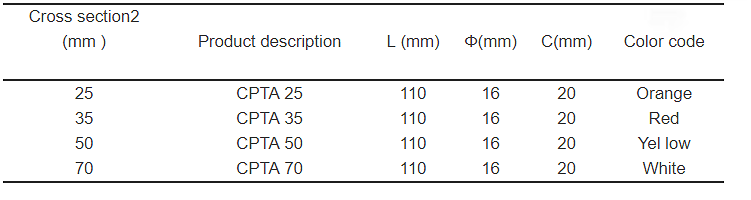 | These pre-insulated lugs are suitable for insulated stranded aluminum conductors. Stripped cables are inser ted up to the end, Crimping according to the marks with appropriate crimping die size over the insulation. The electrical contact and the seal ing by the ring are achieved during the crimp process. A seal-joint makes tight the connection and al lows connecting the aluminum cables. The sealing ring color coded to easier identify the cross sections, inside aluminum sleeve filled with contact grease for a best electrical contact, Insulation material made of weather resistant polymer. |
