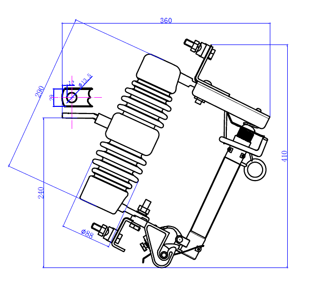 | TYPE | Rated Voltage (KV ) | Rated Current(A) | Breaking Current (A) | Impulse Voltage (KV) | Power-frequeny withstand voltage (kv) | Creepage Distance (mm) | Weight (kg) |