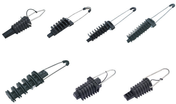 | This Conical wedge clamp composed of an opened thermoplastic body with very high mechanical and climatic resistance, an inner sheath consisting one or two insulating plastic wedges ensuring the clamping of the neutral messenger without damaging cable insulation. Two stainless bail ends are compressed on it to lock intoclamp. Simple assembling because the wedges open by pulling them back. The flexible steel loop can be fixed into a closed eye bracket. | |