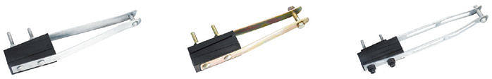 | The clamps are designed to anchor self-supporting LV-ABC lines 4 cores. The wedge type clamp is self-adjusting and it was made of high high mechanical and climatic resistant insulating material ensuring a good stress repartition on bundle without damaging insulation. Pilot wires or street lighting conductors are led alongside the clamp.Two hot dip galvanized steel tightening straps with associated bolts and nuits or pins.The clamp is spring loaded thus opening alone when screw untightened to easy conductor insertion.Single M12 bolt and self-blocking nut allows clamp also to be fixed to closed eye screws or brackets.It can be bolted to the pole with M16 eyebolts and bundle the cable with cable tie. |