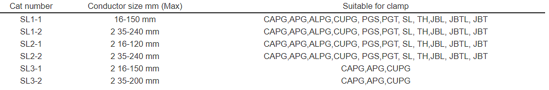 | SL1 and SL2,SL3 are used as a connector covers. The covers are used with Al/Al and Al/Cu connectors as insulation and protection against corrosion caused by various climatic conditions. The cover has to be installed so that the drain hole for ambient water is downwards. The cover is made of UV-radiation and weather resistant thermoplastic. The insulating covers was suitable for type, it have two size, the small insulating cover was use for conductor 2 size till 120mm , and the big cover was use for conductor size till 2 240mm . The Sl3 type covers has to be installed with the holes 2 in the clamp body, we have two size for 120 mm (max) 2 and for 240 mm (max). |