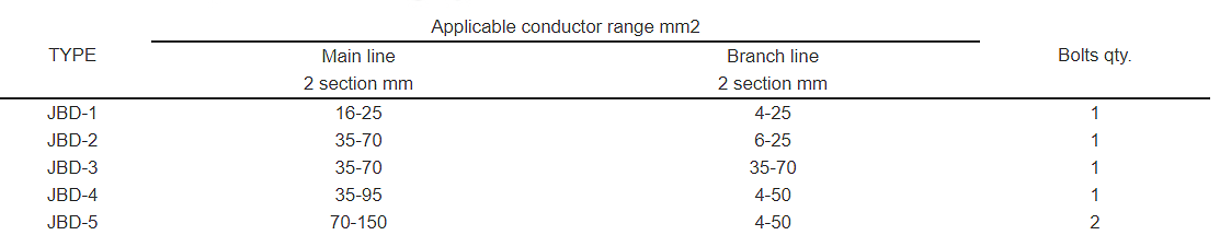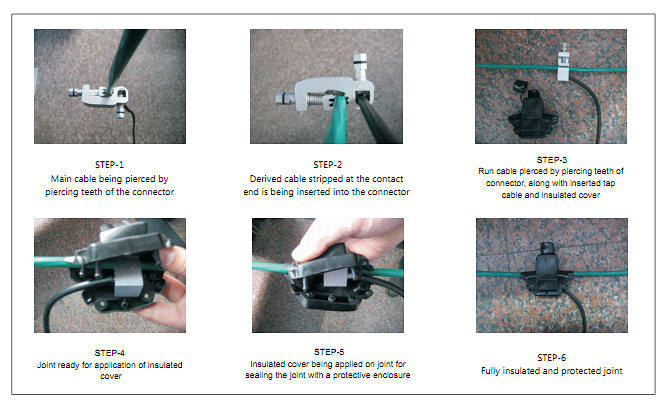 | - A broad usage in the low voltage insulation lines,leading the branch connection from the main conductor. T-connection of low voltage insulation wire service and cable branch connection for building distribution system. The material for the inside body is adopted high strength aluminum alloy 6063. And the outside insulation cover is used polyvinyl chloride (PVC). |